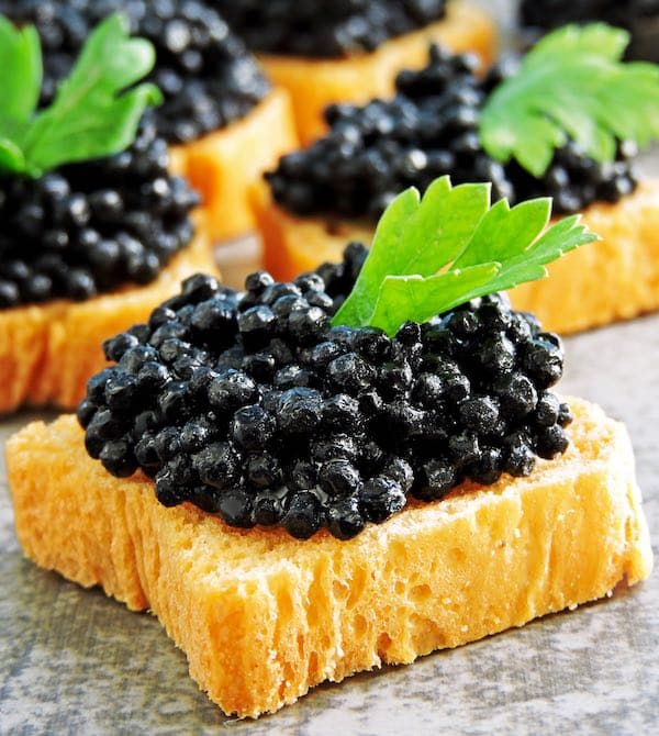 Ingredientes: pan; mantequilla con sal blanda; sucedáneo de caviar negro; perejil.