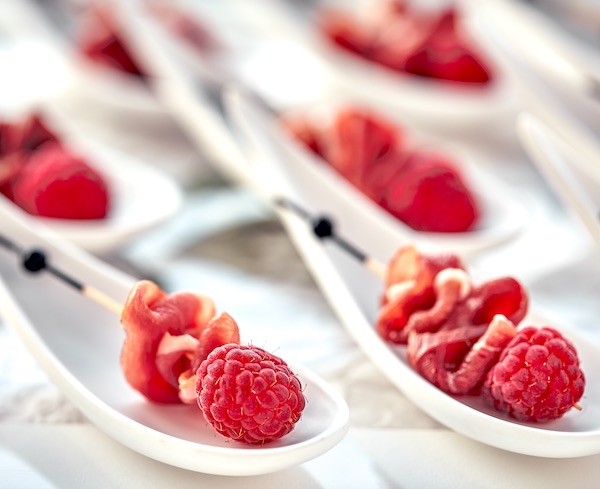 Ingredientes: lonchas de bacon; frambuesas; pinchos