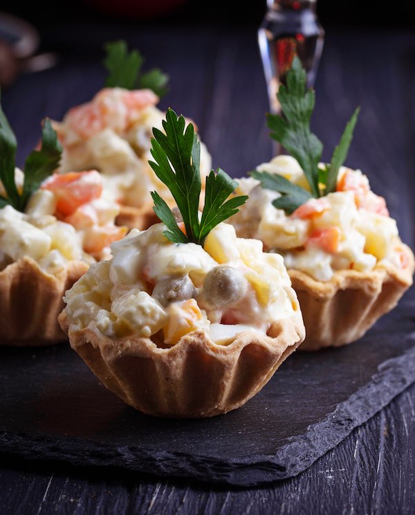 Rellena tu tartaleta con alguna ensalada navideña tradicional, como la ensalada Vinegret, que te explicamos con detalle aquí: