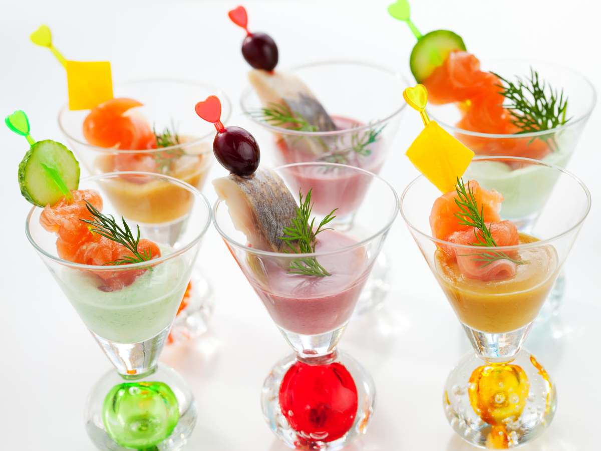 Como ves las opciones para preparar aperitivos en vasitos son infinitas. Lo ideas es que prepares una crema fría, acompañado de algún tipo de pescado ahumado como salmón o arenque. Acompáñalo con pimiento, pepino o aceitunas sin hueso y decóralo aon alguna hierba aromática.