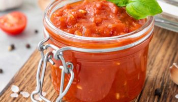 En una fuente para horno, vertemos la salsa de tomate casera y colocamos los canelones sobre ella. Derretimos en el microondas la mantequilla y pintamos con ella los canelones. Espolvoreamos con queso rallado y horneamos a 220º hasta que el queso se dore.