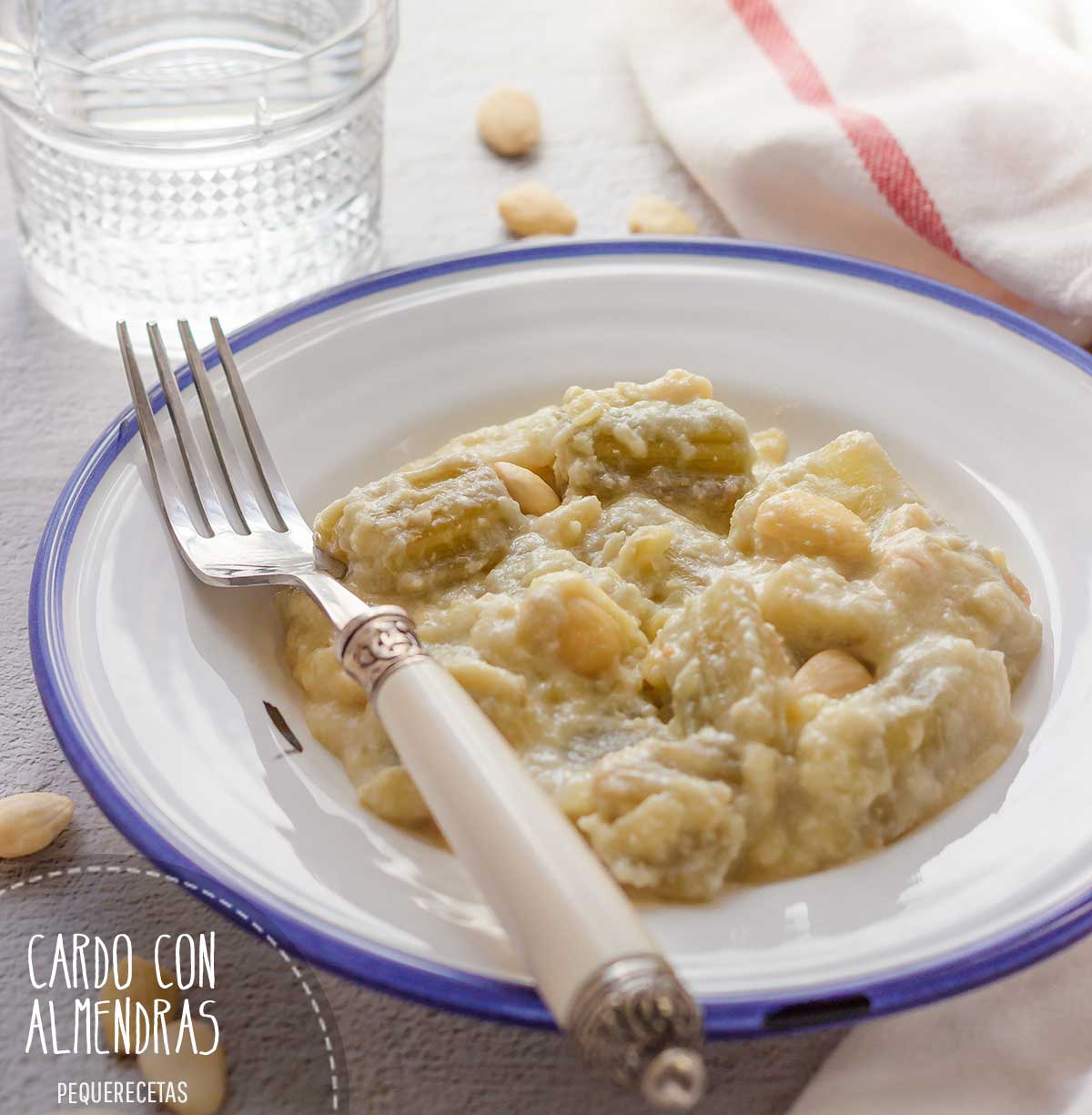 Este cardo con almendras es una receta típica navideña, que se consume en muchas regiones de España, como Aragón, Navarra, Madrid o Soria, pero me ha gustado tanto que ya la he incluido dentro de mi menú semanal familiar, porque ha sido un éxito rotundo.