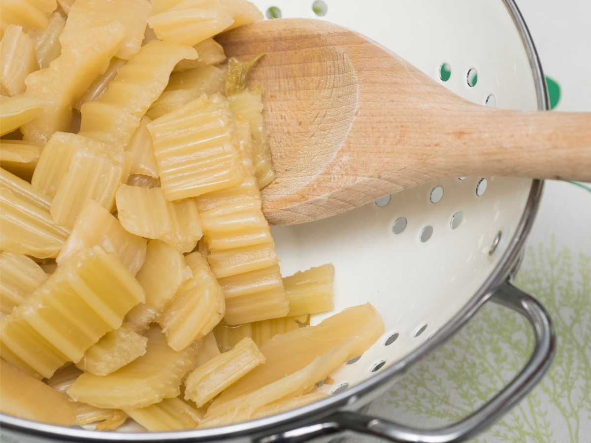 - Si por el contrario has comprado cardo en conserva puedes saltar este paso, y si tus cardos son frescos, te explicamos más abajo el proceso porque primero tendrás que limpiarlos y pelarlos para quitarles las hebras duras.