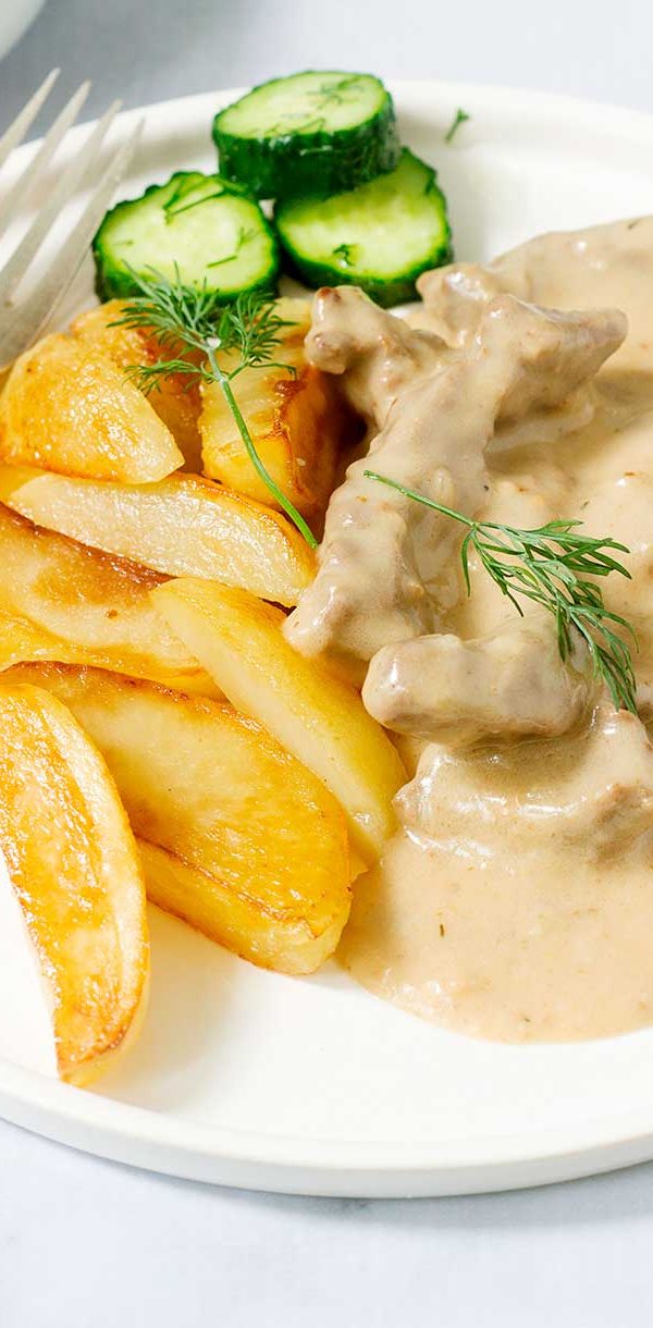 Otra receta con champiñones que te sugerimos es la ternera Strogonoff, verás que esta salsa tiene un sabor diferente gracias a un ingrediente especial: