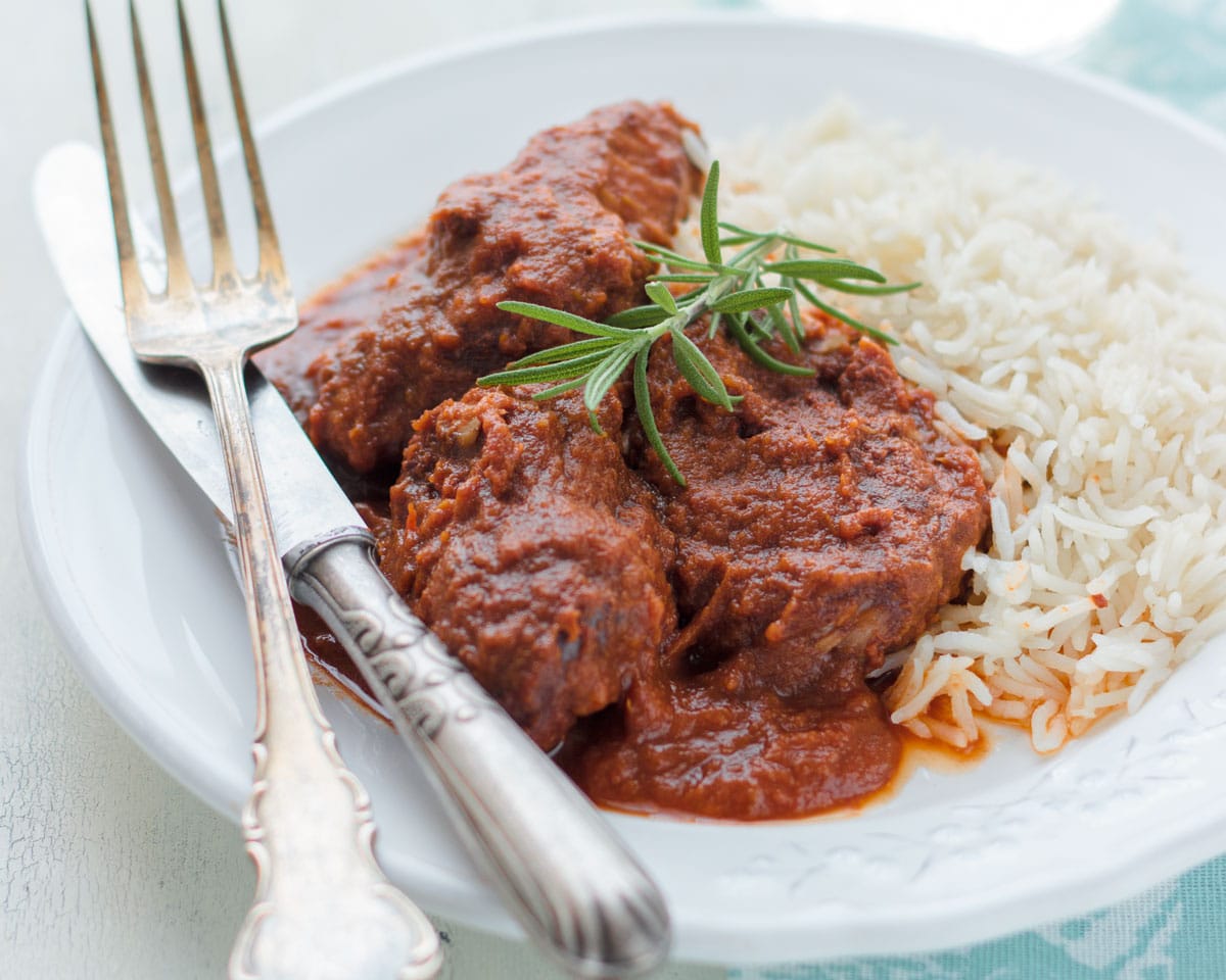 Servimos las carrilleras de cerdo al Pedro Ximénez acompañadas de arroz blanco. A este plato también le va muy bien acompañarlas de puré de patatas casero o patatas fritas, igual que en las carrilleras de cerdo al vino tinto.
