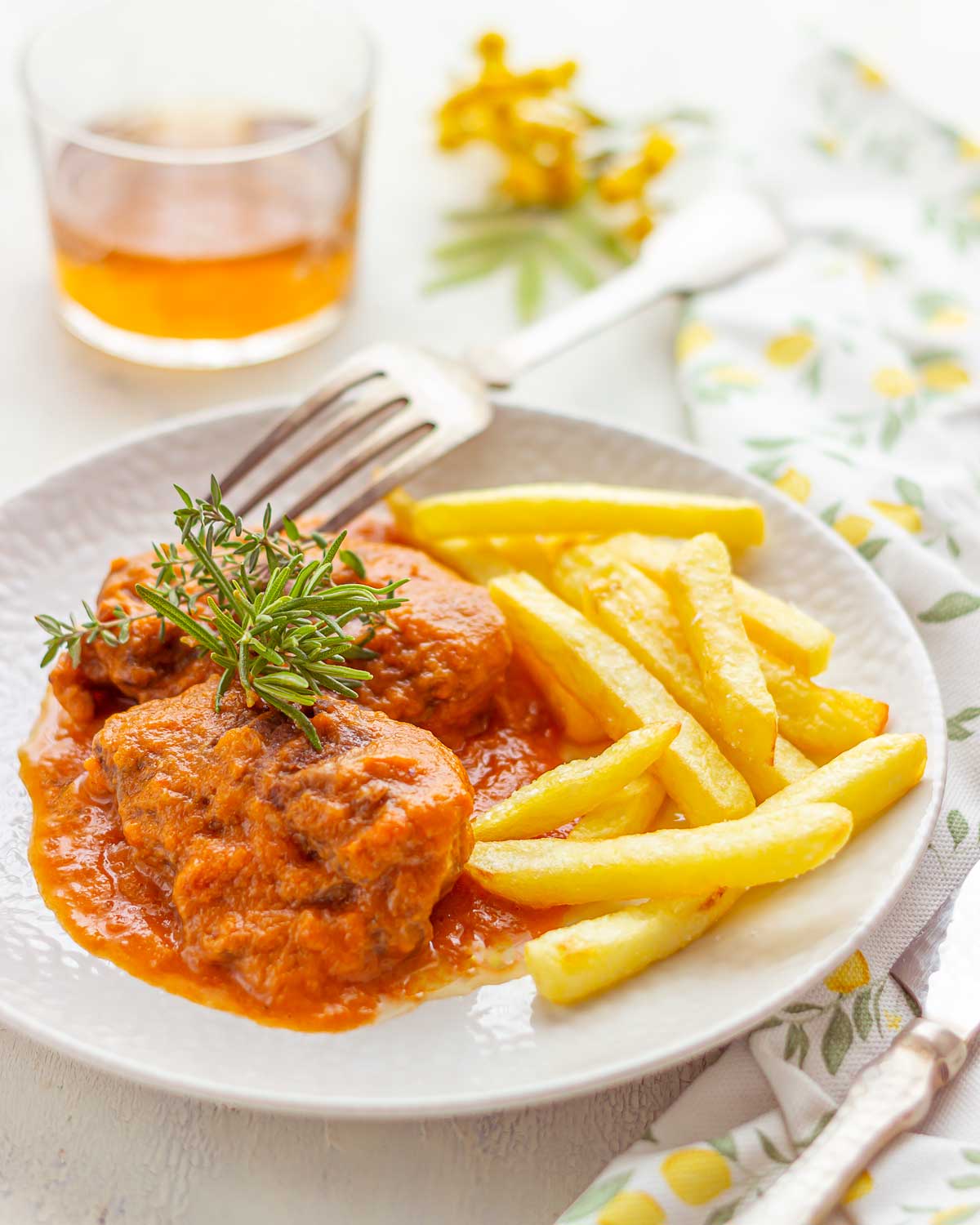Acompaña tus carrilleras en salsa con patatas fritas, como hemos hecho nosotros, o bien con arroz blanco o puré de patatas, y tendrás un plato perfecto tanto para la comida de cualquier día, como para una celebración familiar.