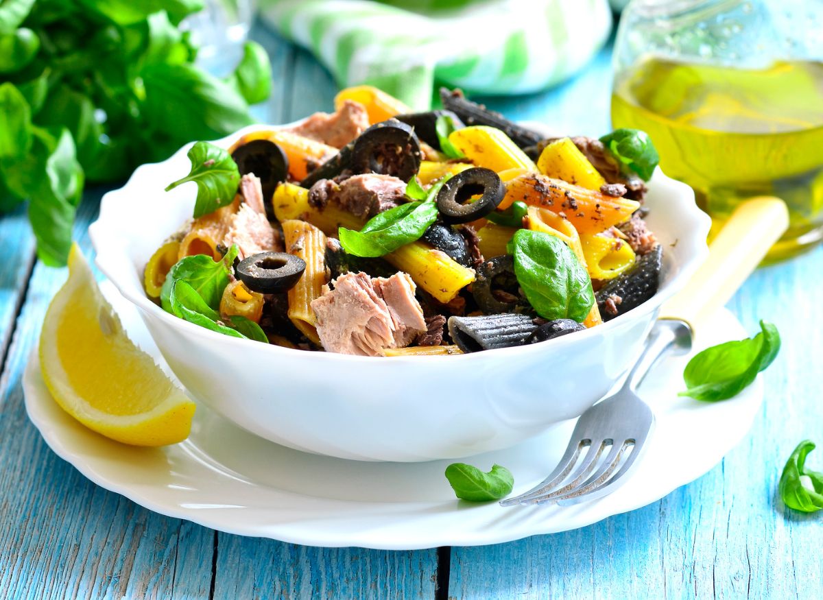 Esta ensalada de pasta con atún es una opción refrescante y llena de sabor. Los penne rigate ofrecen una textura única, el atún las proteínas de calidad, las aceitunas negras laminadas aportan un toque muy personal y mediterráneo, y las hojas de albahaca fresca añaden un aroma y sabor fresco.