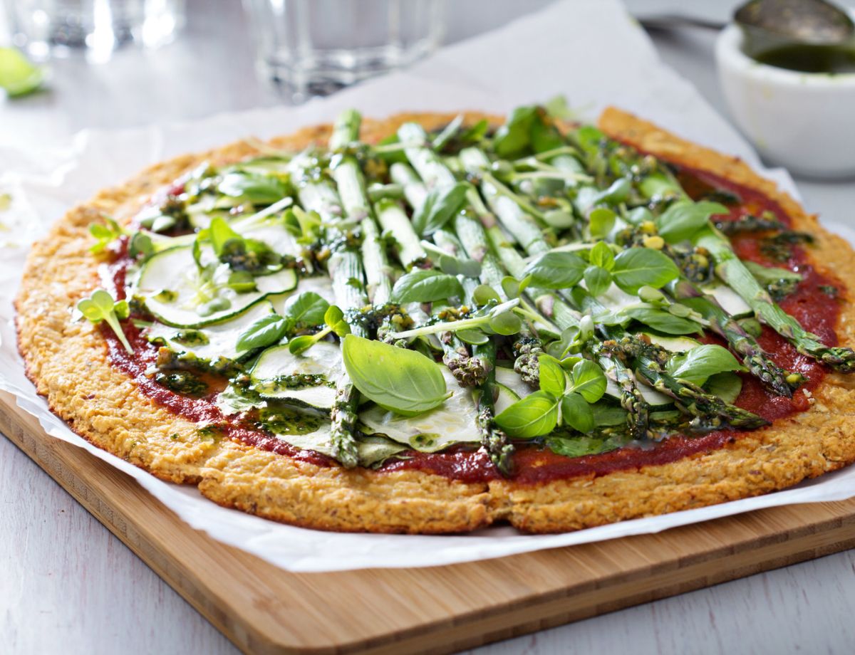 ¡Increíble lo rica que está la pizza con masa de coliflor! Una pizza vegetal que no lleva hidratos de carbono y que resulta ligera y saludable.