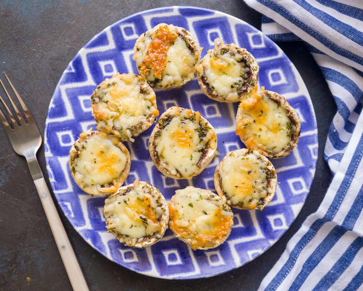 - Sirve los champiñones rellenos de queso en un plato o bandeja, y decóralos con hierbas frescas como perejil o cebollino si lo deseas. Puedes servirlos como aperitivo caliente o como guarnición sabrosa junto a una comida principal.