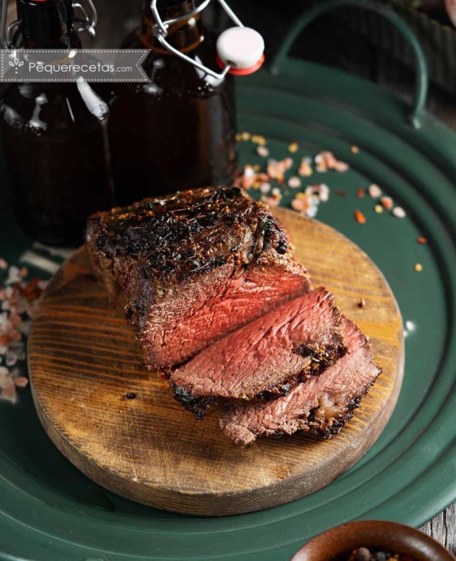 - Al momento de servir, cortamos la carne en filetes de aprox. 1,5 cm de grosor y servimos con la salsa elegida.