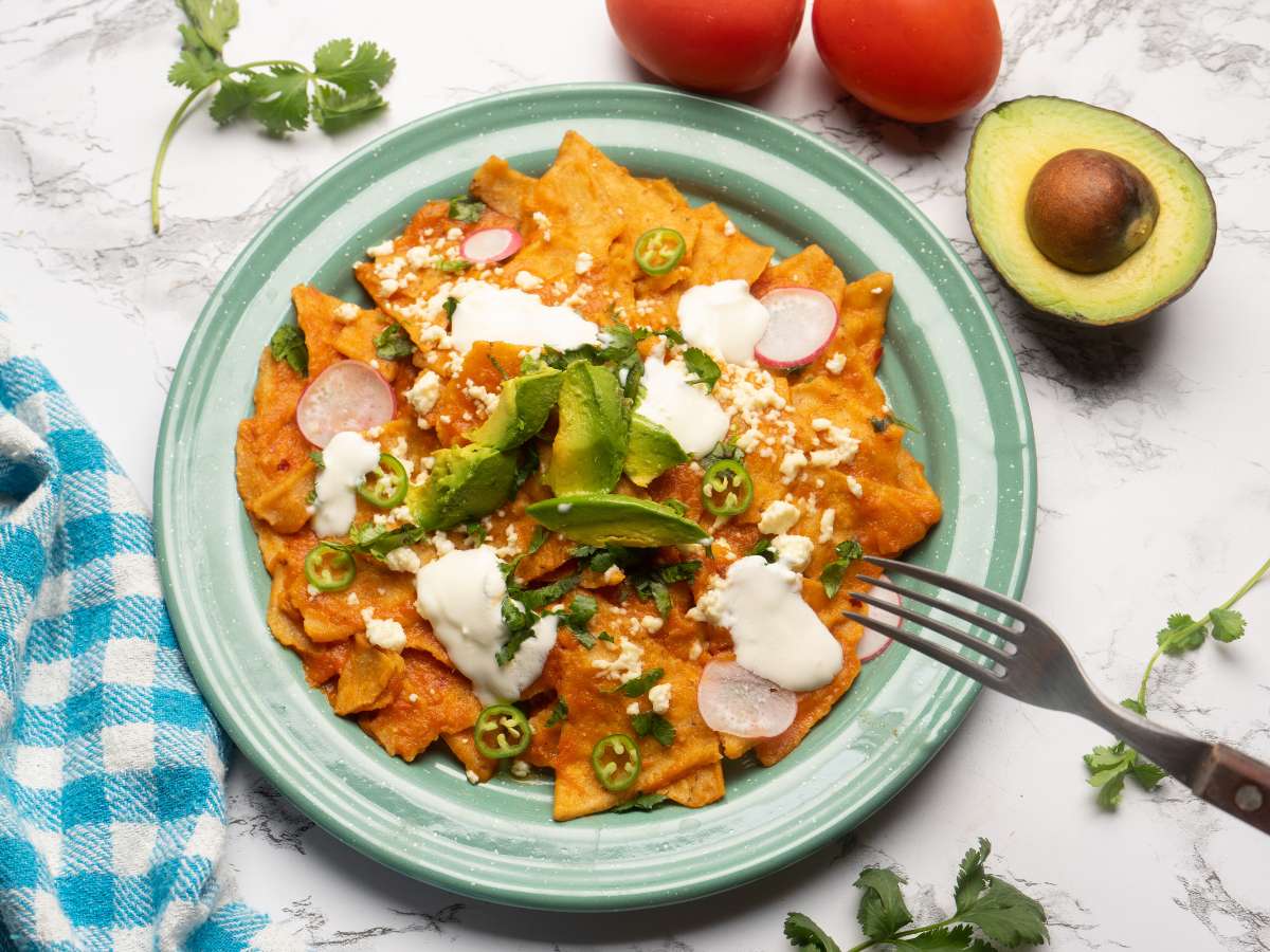 Los chilaquiles son tan versátiles que puedes acompañarlos con lo que más te guste. Algunos le ponen pollo desmechado, otros prefieren frijoles refritos al lado. Y si te gusta el aguacate, una buena rodaja encima no le va nada mal.