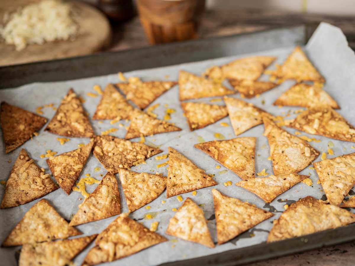 - Otra opción es que prepares los chips de tortilla al horno. Para ello, córtalas en triángulos, pon en una bandeja de horno, rocía con aceite de oliva, y hornea a 180ºC hasta que veas que los bordes están ligeramente dorados.