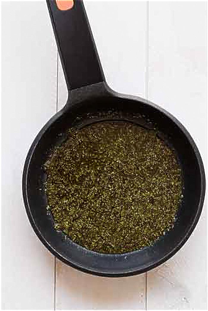 - En una sartén cubrimos el fondo con aceite de oliva virgen extra, añadimos: comino, orégano, tomillo, y guindilla cayena (triturada con antelación).