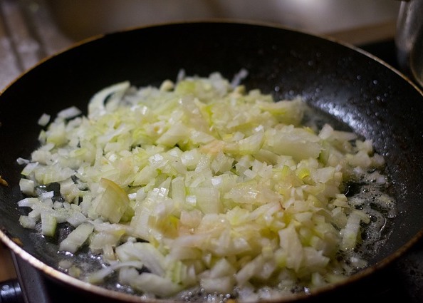 - Picamos la cebolla en cubos pequeños.