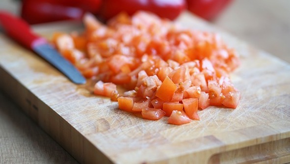 - Aparte cortamos el tomate en cubos pequeños.
