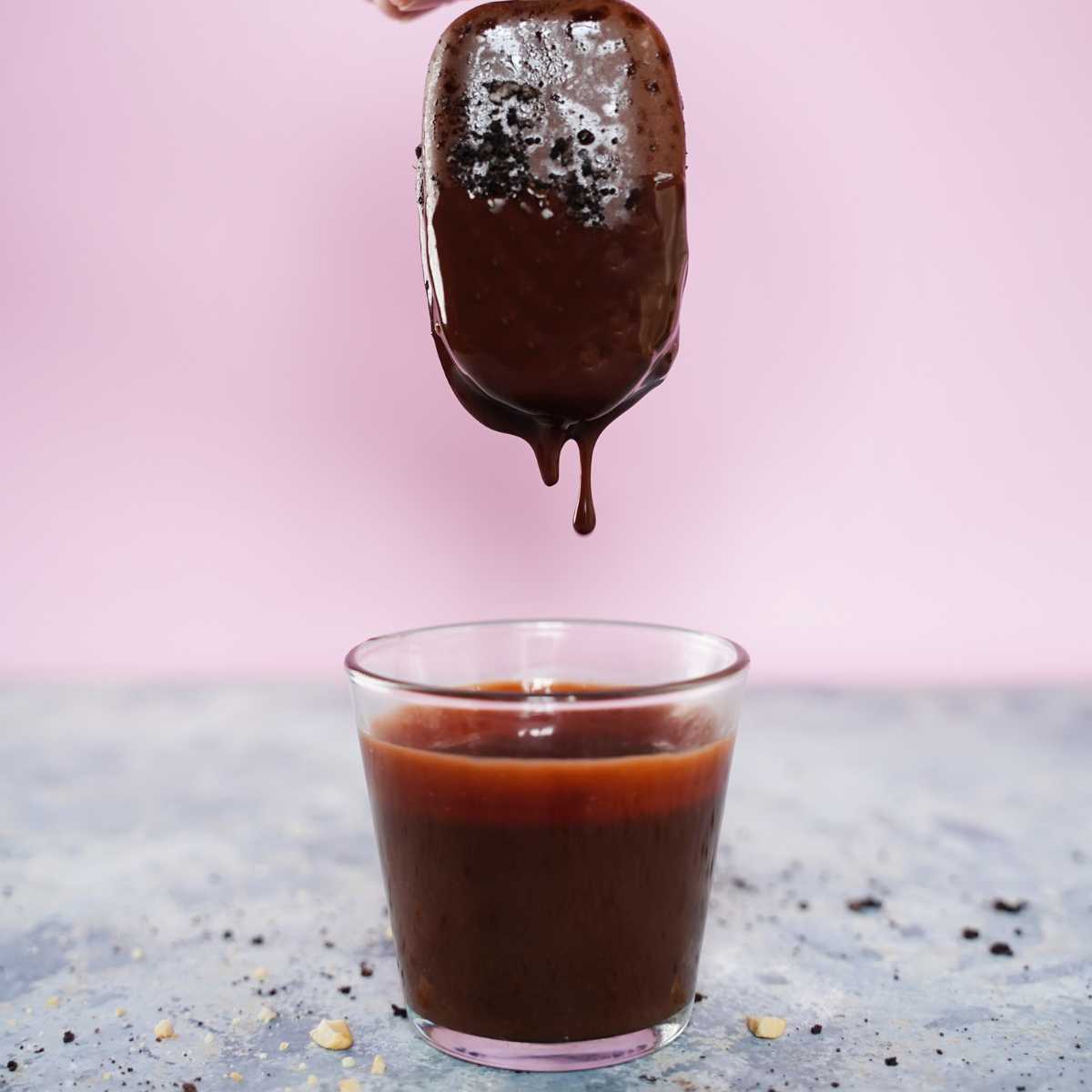 - Utiliza chocolate de cobertura o de postres, porque se funde y endurece mejor. Si quieres un acabado más brillante, añade una cucharadita de manteca de cacao o aceite de coco derretido.