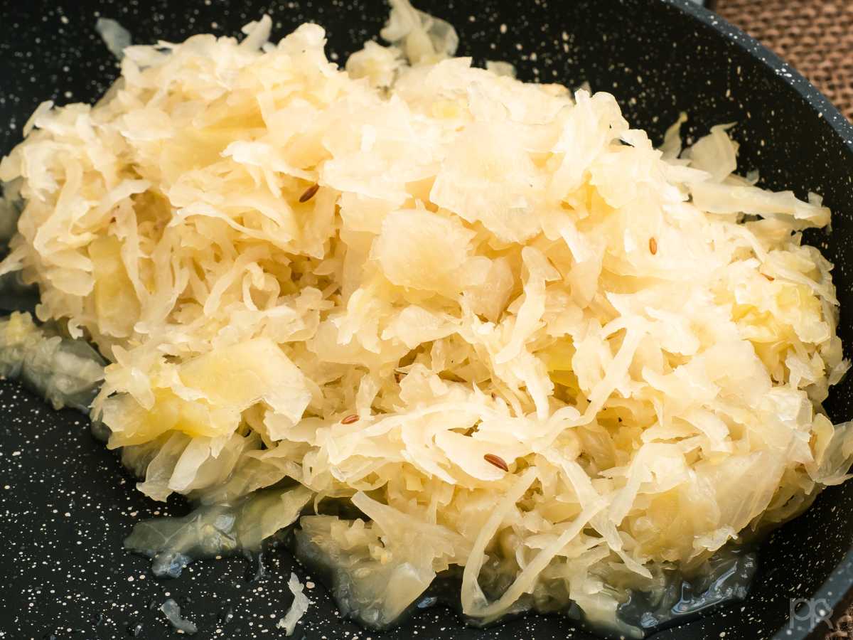 - Puedes añadir un chorrito de agua o caldo para suavizar el chucrut si lo prefieres menos ácido.