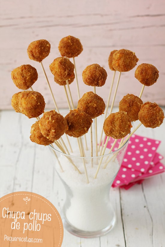 Piruletas  de bolitas de pollo con queso fritas para niños