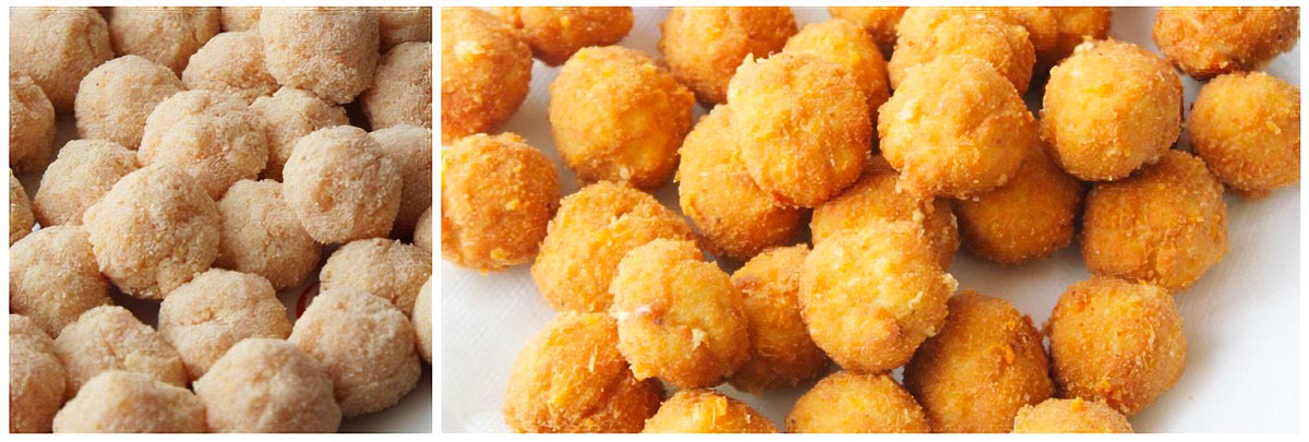- Formamos bolitas con las manos (si se os pega la mezcla, podéis humedeceros las manos) que rebozamos en pan rallado.