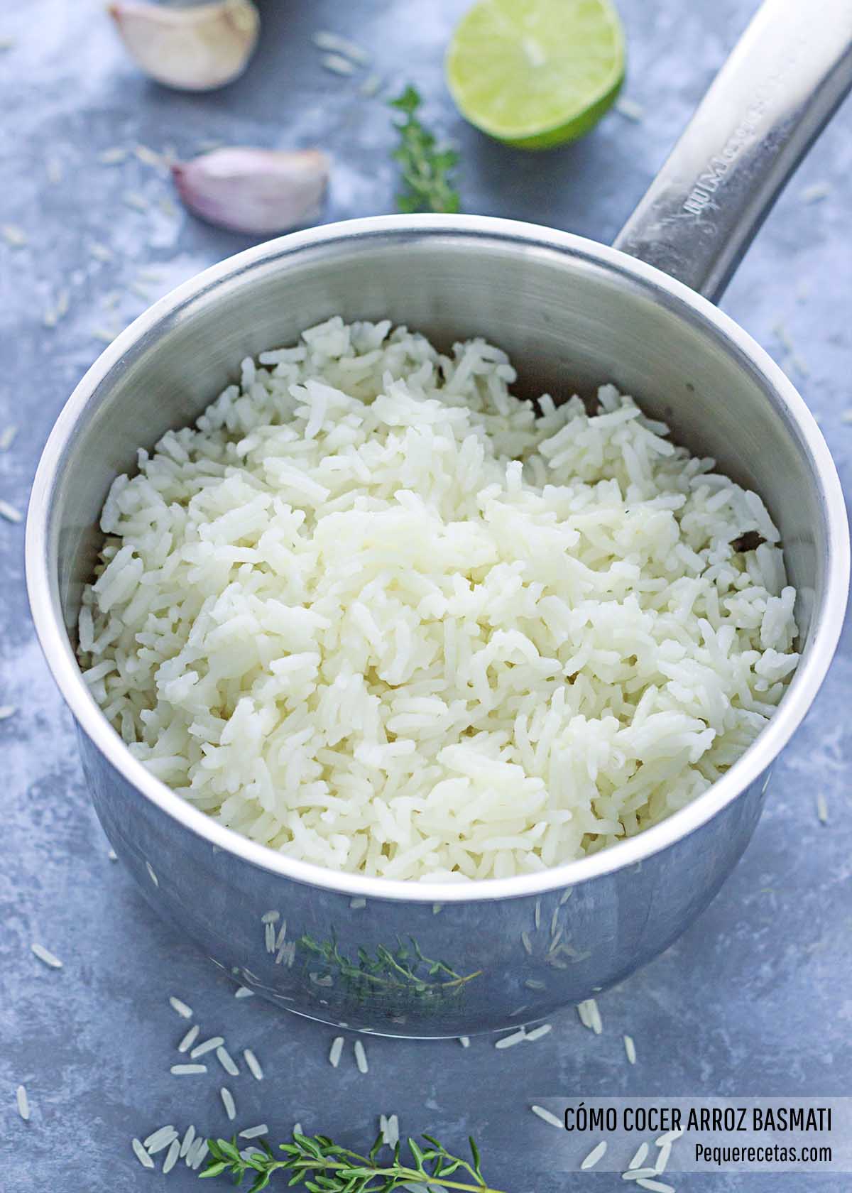 - El arroz basmati suele tardar unos 15 minutos desde que comience el agua a hervir, momento en el que debemos bajar el fuego a medio-bajo. El arroz estará listo cuando absorba todo el agua.
