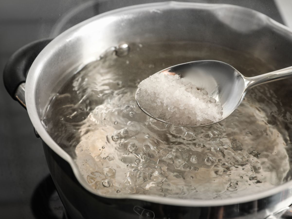 - Remueve bien la sal en el agua para asegurarte de que se disuelva completamente.
