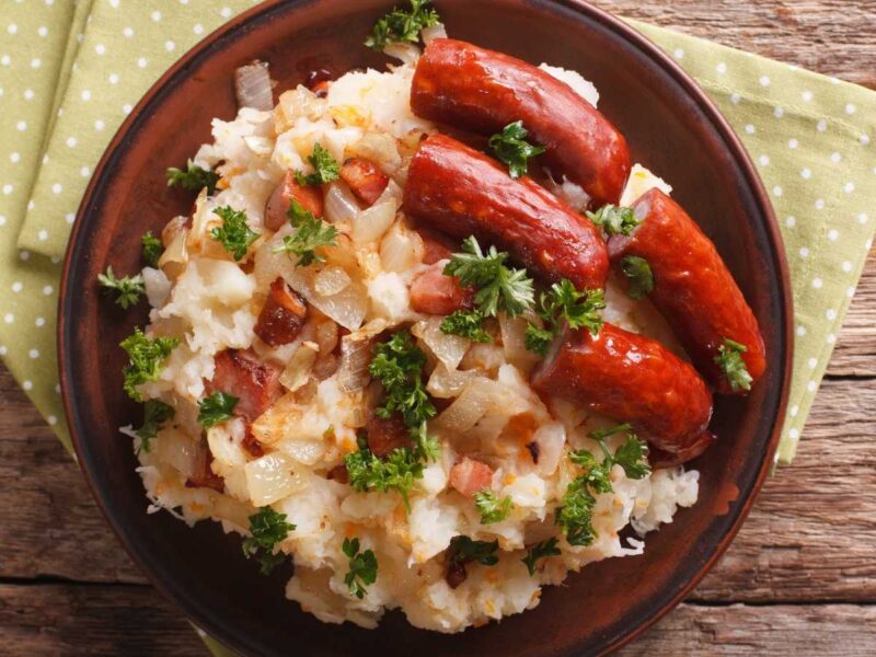 Si estás en Holanda durante el invierno, debes probar el Stamppot. Este plato es la definición de comida reconfortante: una mezcla de puré de patatas con col, chucrut, o zanahorias, generalmente acompañado de la salchicha ahumada holandesa conocida como Rookworst. Es un plato que encontrarás en muchos menús de Ámsterdam y que es perfecto para calentar el cuerpo en un día frío.