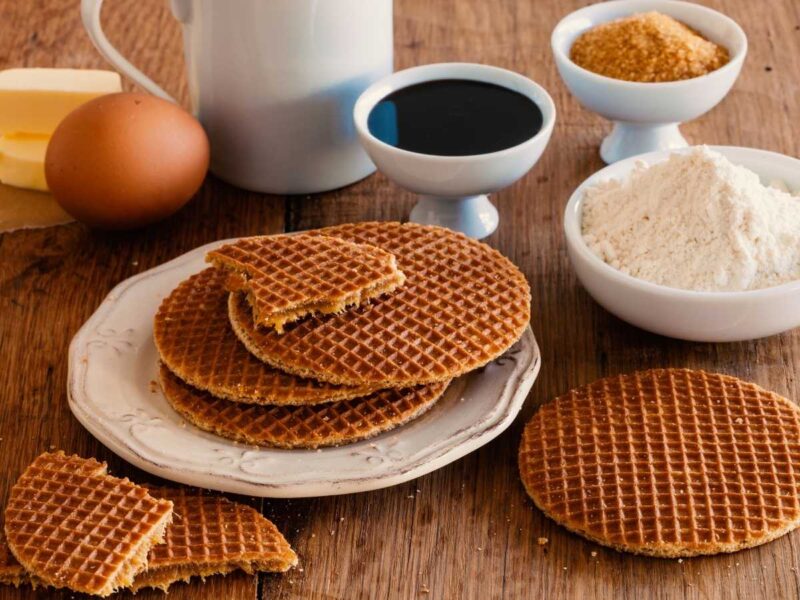 Los Stroopwafels son quizás el dulce más famoso de Holanda. Se trata de dos finas galletas de waffle unidas por un relleno de caramelo pegajoso. Originarios de la ciudad de Gouda, estos waffles se han convertido en un símbolo de la gastronomía holandesa. Puedes encontrarlos en cualquier supermercado, pero te recomiendo probarlos recién hechos en alguno de los mercados de Ámsterdam, como el Albert Cuypmarkt.