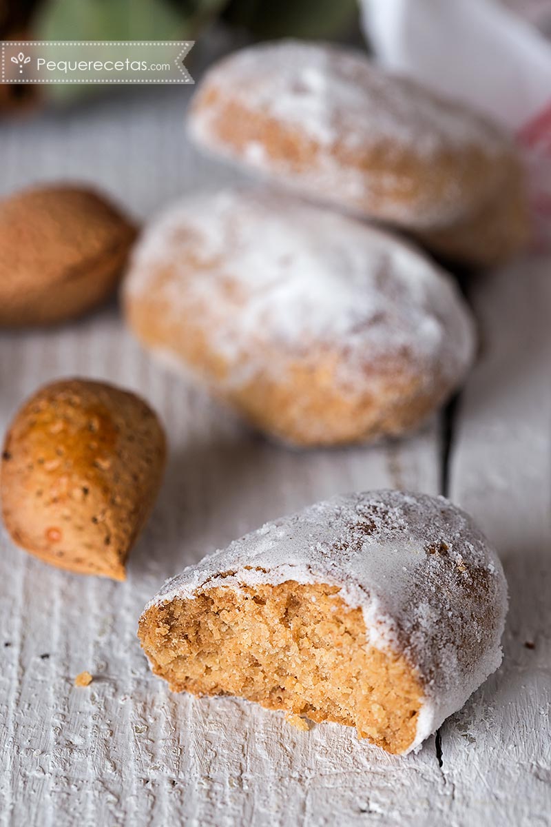 Estos alfajores de almendra son una especie de bizcochos con una masa húmeda que se rebozan en azúcar glas. Por sus ingredientes están emparentados con el mazapán y el turrón, y de hecho comparten un origen árabe. En particular los alfajores navideños de almendras nacen de la gastronomía del Al-Ándalus, y su nombre deriva del hispano-árabe “al-hasú” que significa “el relleno”.