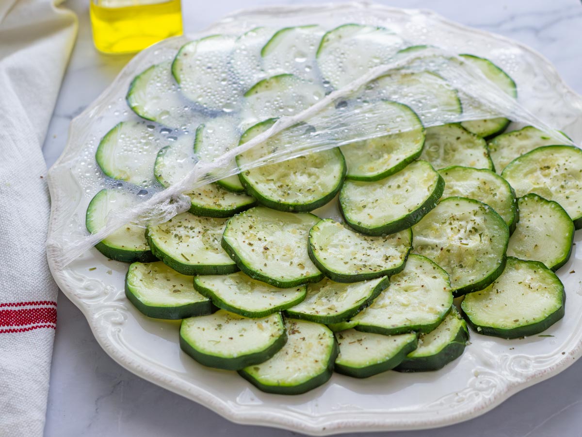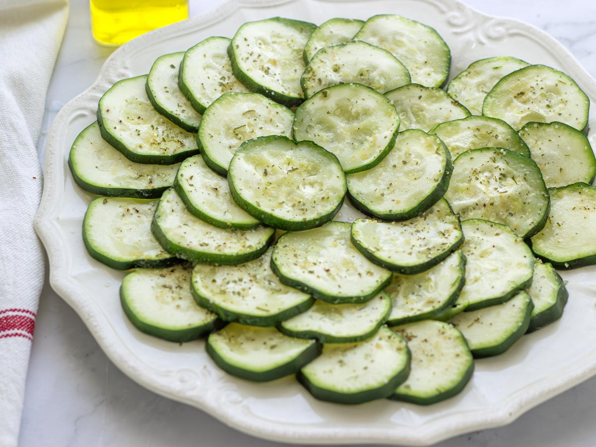 - Rocía el calabacín con aceite de oliva virgen extra.
