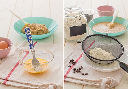- Por último incorporamos harina tamizada con levadura química y las chips de chocolate.