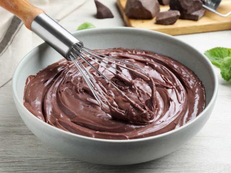 Si eres amante del chocolate, esta variante te encantará. Simplemente añade unos 100 g de chocolate negro o con leche troceado a la crema pastelera una vez que la retires del fuego, y remueve hasta que se derrita por completo. Te quedará una crema perfecta para rellenos de tartas o profiteroles.