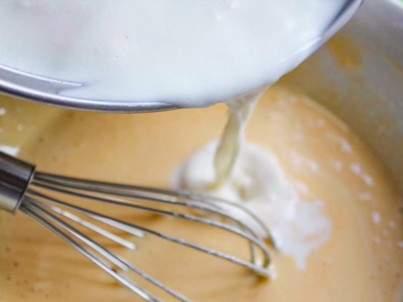 - Tómate tu tiempo en este paso, queremos que las yemas queden bien mezcladas y blanquecinas. Esto ayudará a que la crema quede más suave.