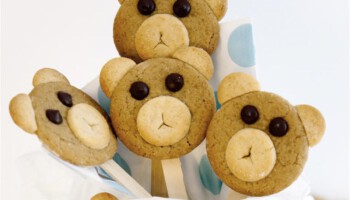 Mira qué divertidas estas galletas bizcocho de ositos ¿a que son simpáticas? Te explicamos cómo hacerlas para que cualquier tarde os pongáis a cocinar juntos en familia