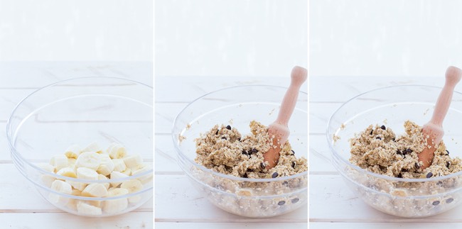 Otra opción deliciosa y muy saludable son estas galletas de avena y plátano, con pepitas de chocolate, una opción perfecta para las meriendas infantiles.