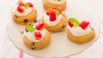 Nosotros nos hemos puesto a experimentar con las cookies y las hemos rellenado de fresas con nata, ahora que estamos en la época (si no, puedes comprarlas congeladas o poner otra fruta de temporada)