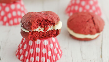 Estas galletas Red Velvet son muy originales por ese color rojo, y además están buenísimas. Van rellenas de frosting de queso así que imagínate qué bocado.