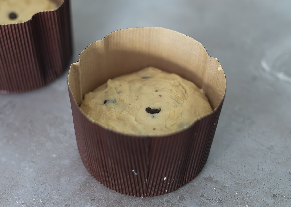 - Si vamos a hacer dos panettones podemos colocar uno junto al otro a la hora de hornear,