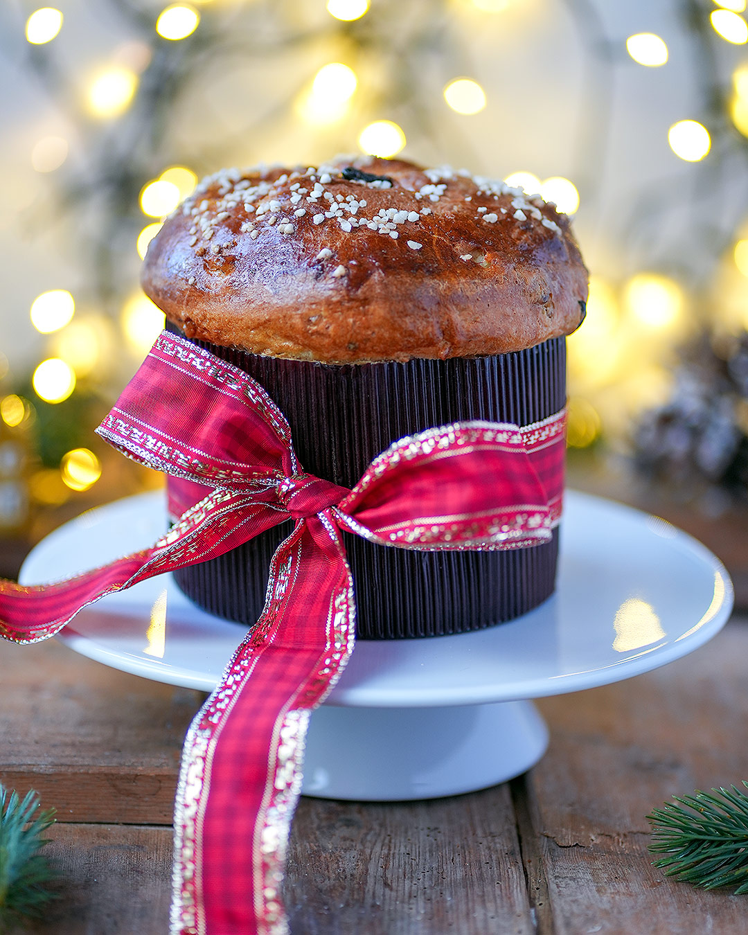 El panettone (o panetone) es un dulce navideño típico de Italia, originario de Milán, que ha ganado popularidad en España y en el resto del mundo. Este bizcocho esponjoso, alto y con forma de cúpula (suele tener entre 12 y 15 cm de altura), se rellena tradicionalmente con frutas confitadas y pasas, convirtiéndose en un imprescindible de la Navidad.