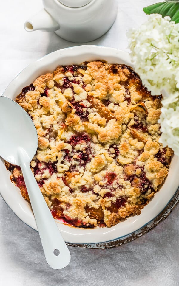 - La cubrimos con las ciruelas. Distribuimos el resto del crumble por encima.