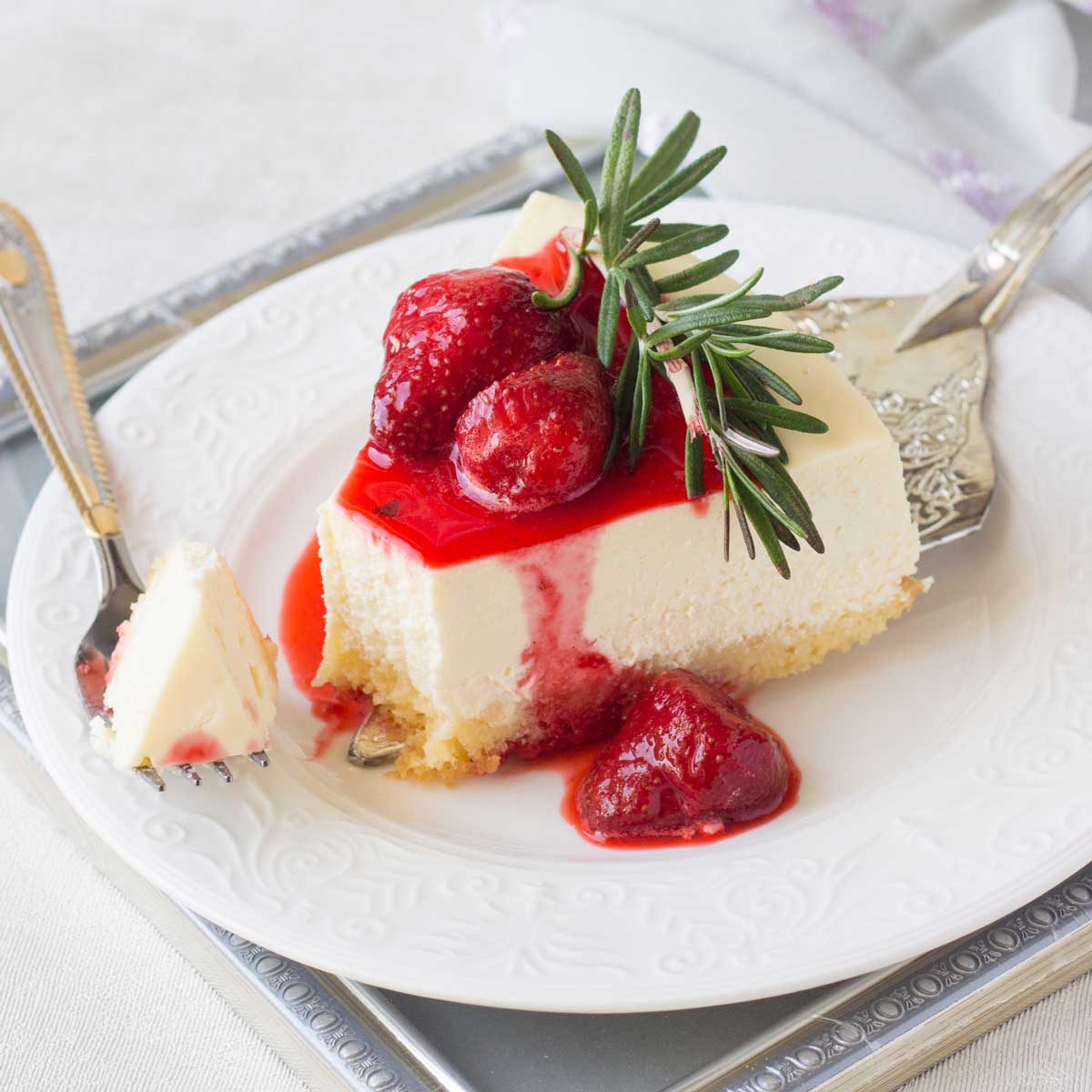 Otra opción es hacer una tarta de queso con fresas, con un ligero coulis o salsa de fresa y ponérselo a cada comensal al servir la tarta.