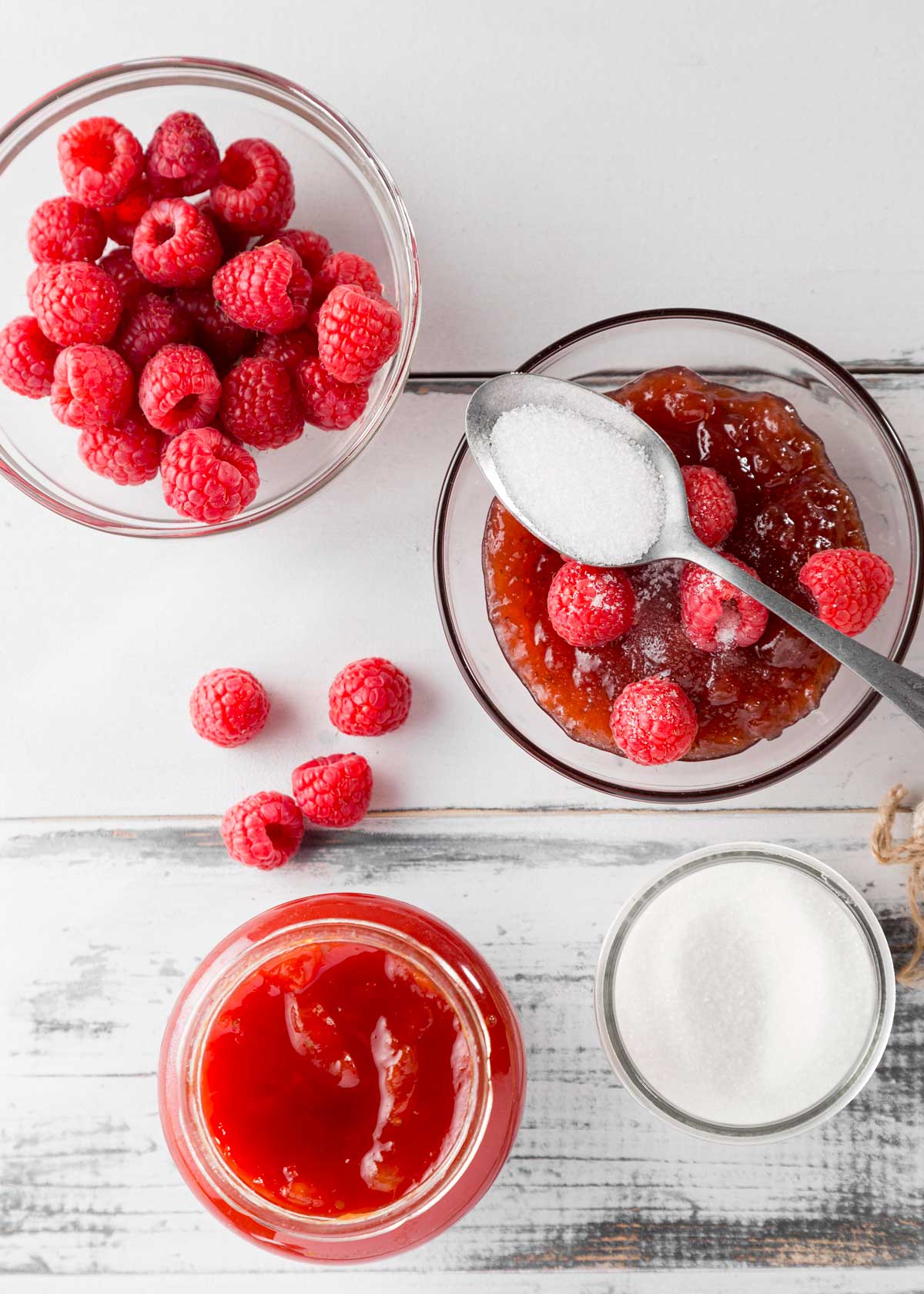 - Si os molestan las pepitas podéis colar la salsa de frambuesa antes del siguiente paso.