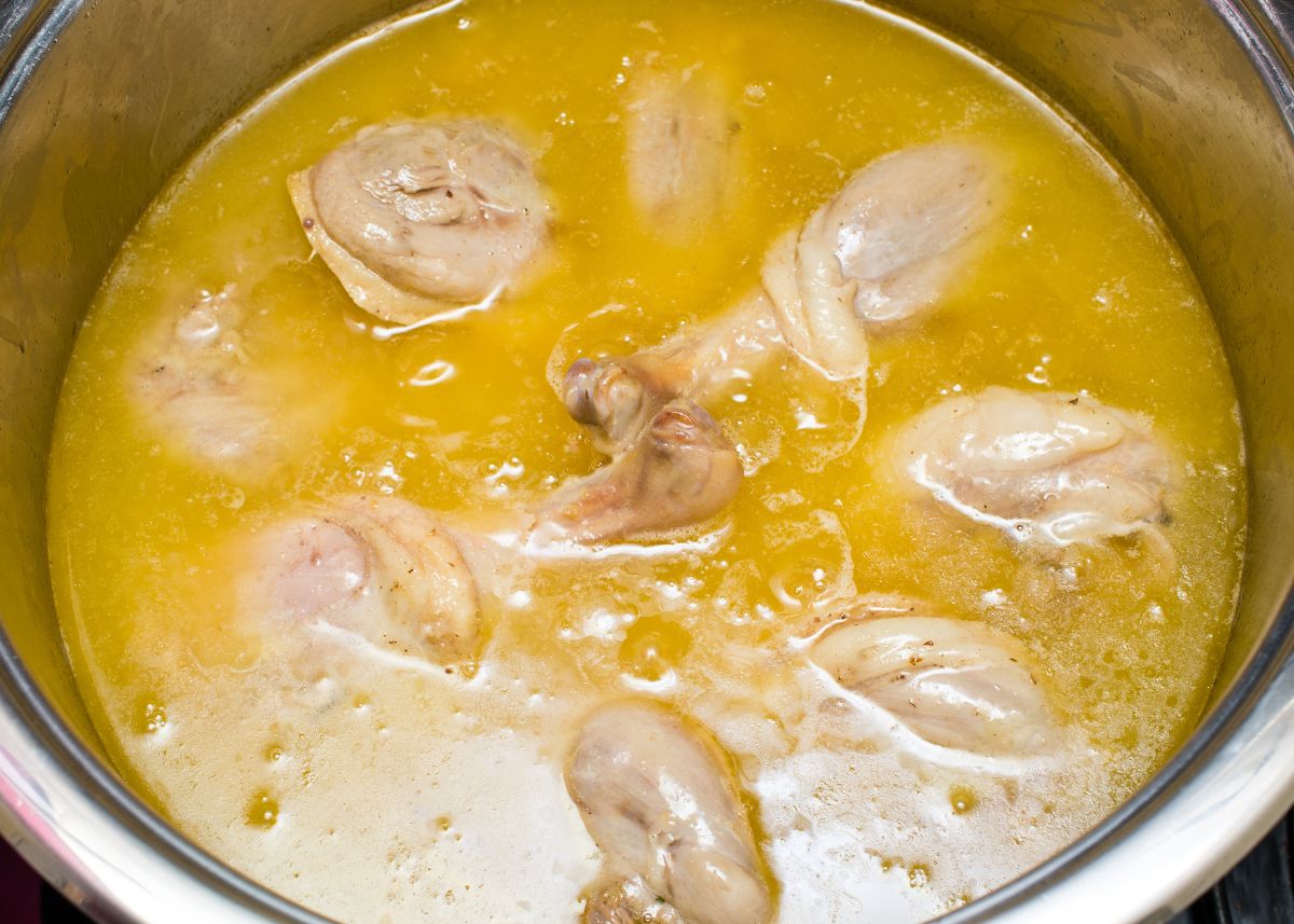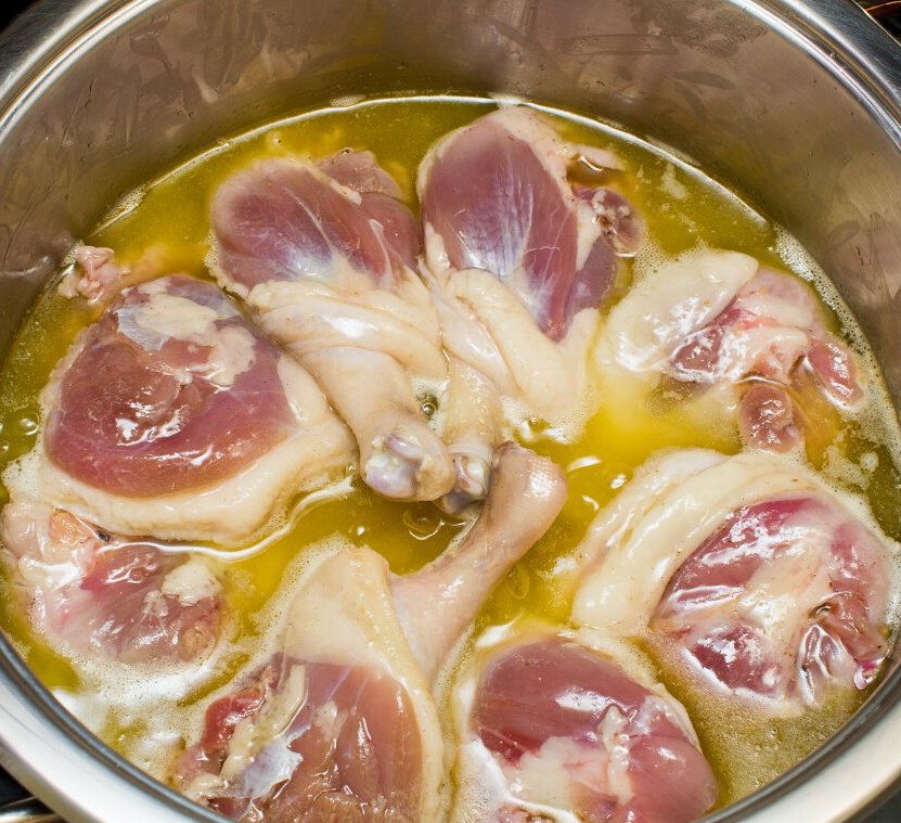 - Colocamos los muslos en la grasa derretida, asegurándonos de que queden completamente cubiertos.