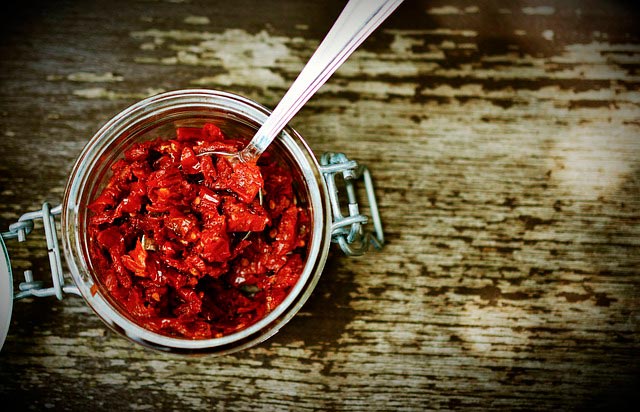 - Acidificación con limón o vinagre: para preparar verduras en aceite, las mismas deben ser blanqueadas en una solución de agua y vinagre blanco en partes iguales. Todos los ingredientes de la preparación deben ser tratados de la misma manera (hierbas aromáticas, especias, ajo). En el caso de preparaciones en vinagre, las verduras pueden ser crudas. El tomate suele tener un pH bastante ácido (para que las conservas sean totalmente seguras el valor del pH de todos los ingredientes no debe superar 4), si hiciera falta podéis agregar zumo de limón.