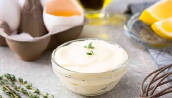 - Añadimos en un bol la crème fraïche, la mayonesa, el chutney de mango, el curry, las almendras, y las pasas.