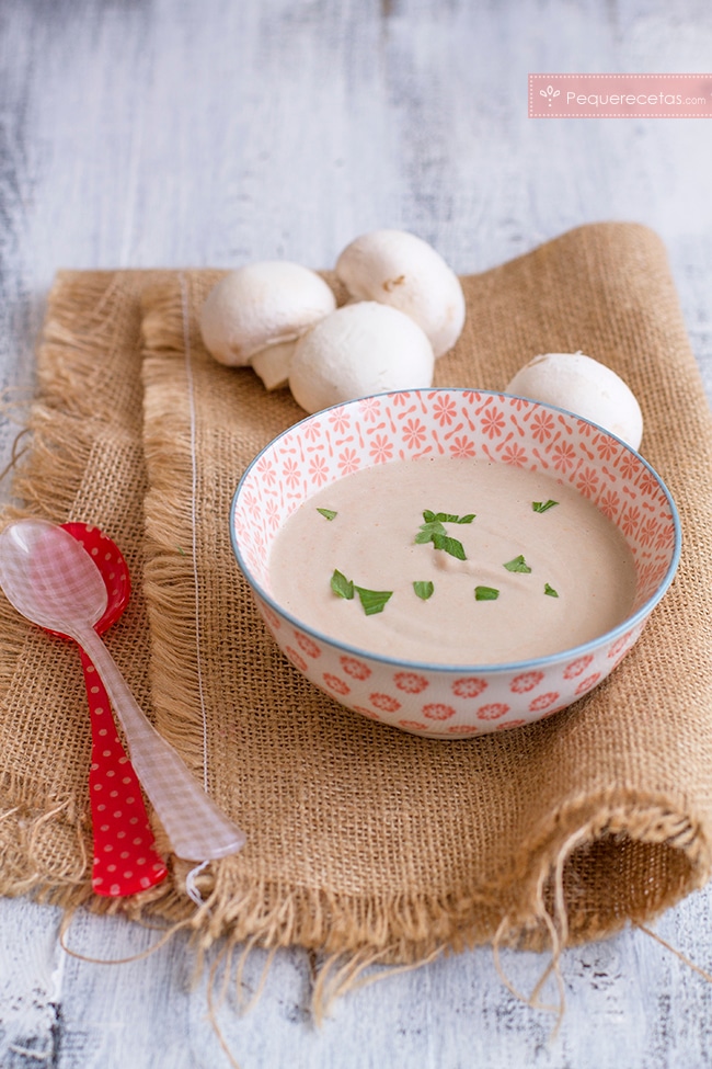 Esta deliciosa crema de champiñones gustará a los niños por su textura y su sabor. No es para nada complicada y los ingredientes los tenemos todos por casa.
