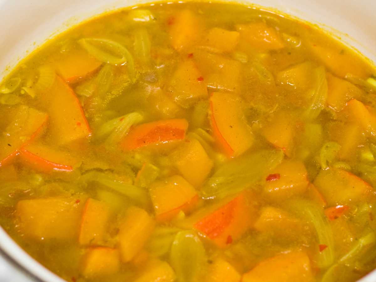 - Vierte el caldo de verduras en la olla, asegurándote de que los boniatos queden cubiertos. Si es necesario, añade un poco más de líquido.