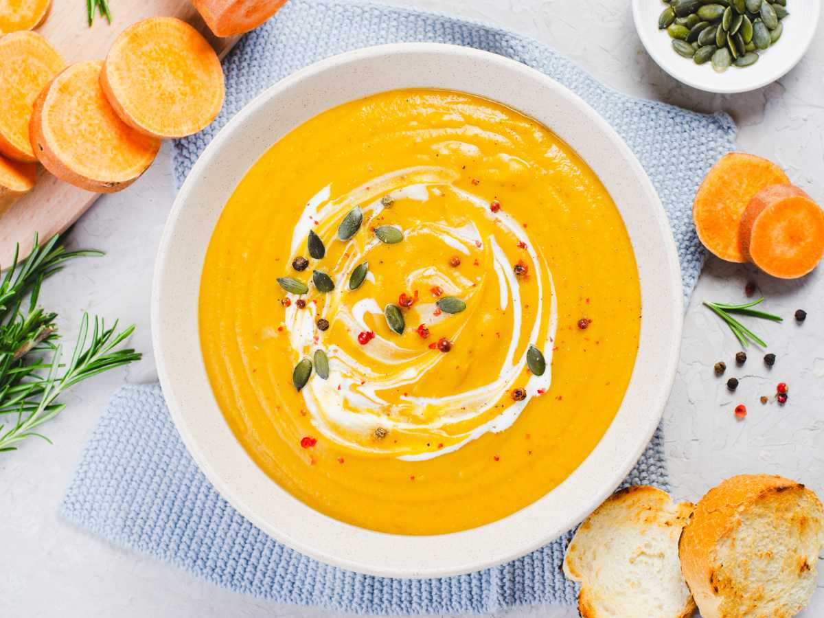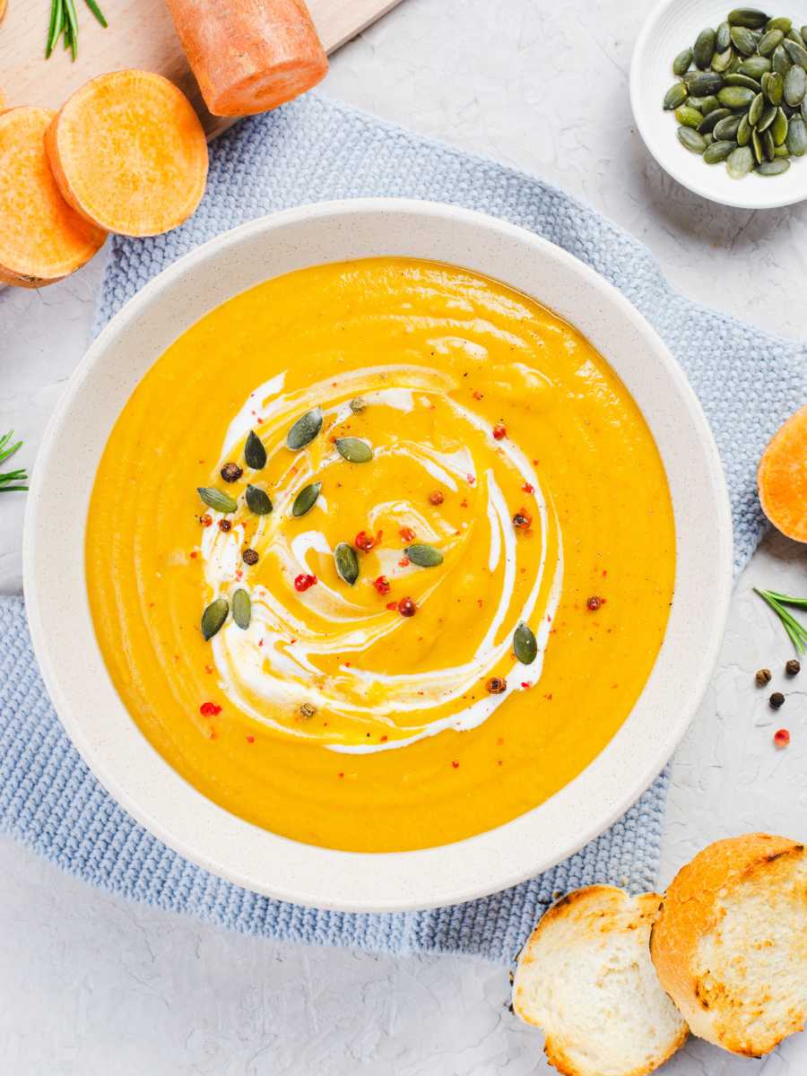 - Rico en vitamina A: Gracias a su contenido en betacarotenos, el boniato es excelente para la salud ocular y el sistema inmunológico. Una porción de esta crema cubre gran parte de la cantidad diaria recomendada de esta vitamina.