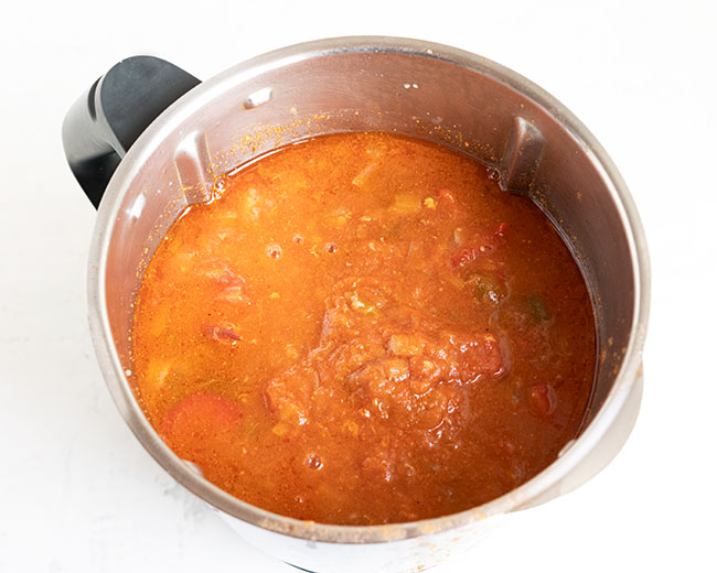 - Ponemos el caldo o fumet de pescado (abajo tenéis la receta casera si queréis), y cocinamos a fuego suave unos 20 o 30 minutos.