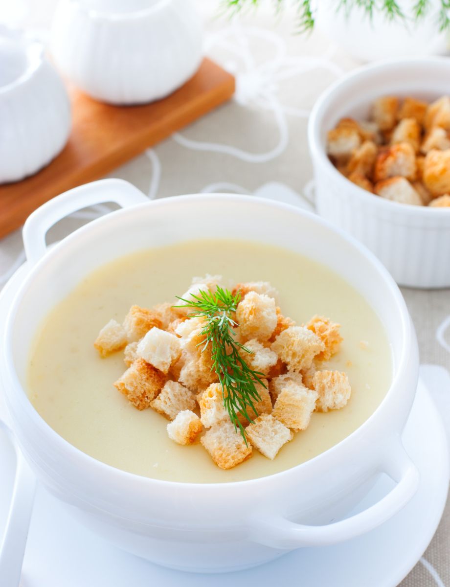 - Servimos inmediatamente con un puñado de picatostes y una ramita de eneldo fresco por encima.