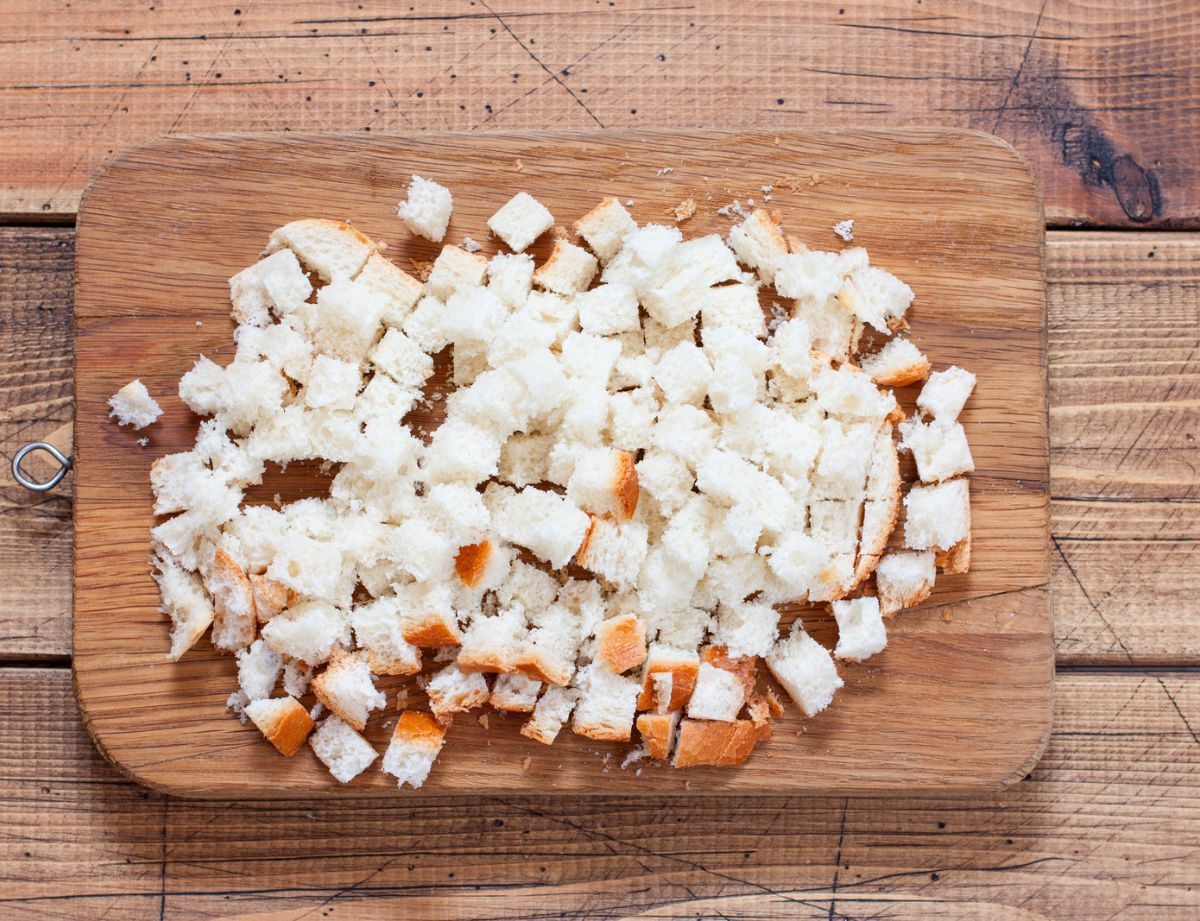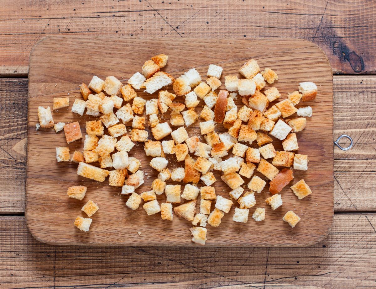 - Cuando haya cogido temperatura, incorporamos los cubos de pan y vamos dejando que se doren por todos los lados.